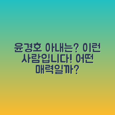 윤경호 와이프에 대한 매력을 세 가지 관점에서 살펴보겠습니다. 그녀의 독특한 성격과 연애 이야기, 그리고 함께한 여정은 팬들에게 큰 사랑을 받고 있습니다. 이 부부의 아름다운 모습은 많은 이들에게 감동을 주고 있습니다.
