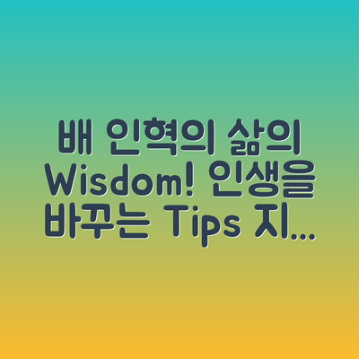 여러분, 삶에서 배 인혁 같은 지혜를 얻고 싶으신가요? 우리는 모두 각자의 경험을 통해 그리고 누군가의 지혜를 통해 더 좋은 선택을 할 수 있습니다. 그렇다면 그의 이야기를 통해 어떤 교훈을 얻을 수 있을까요?